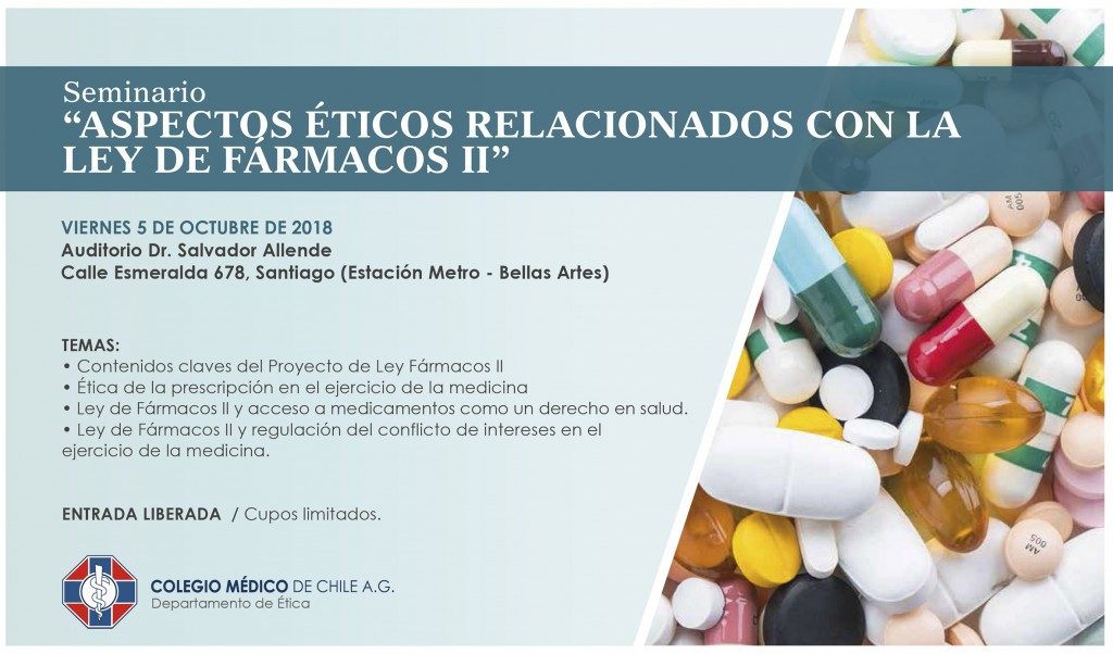 Nuestra Institución tuvo el honor de estar presente en el “ASPECTOS ÉTICOS RELACIONADOS CON LA LEY DE FÁRMACOS II”, mediante la invitación extendida a nuestro Presidente, el Dr. Eghon Guzmán a participar en el Seminario realizado el dia viernes 5 de Octubre en el Auditorio Salvador Allende, ubicado en Esmeralda 678, comuna de Santiago.